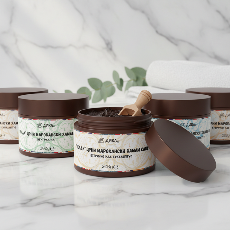 Isprobajte naš Dika Crni Marokanski Beldi Hamam Sapun i priuštite sebi luksuzan ritual čišćenja. Savršen za sve koji traže prirodnu i efikasnu negu kože. Pružite svojoj koži vrhunsku negu koju zaslužuje i osetite razliku koju donosi prirodna nega i učinite je glatkom i prirodno zdravom sa Dika sapunima. Vaša koža će vam biti zahvalna!